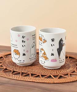 いぬの表情や行動が可愛らしく描かれた湯呑。