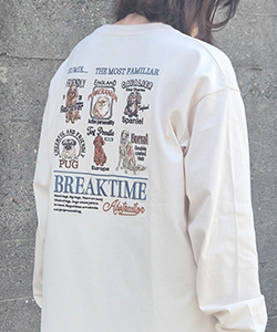 人気の犬種がずらりと並んだ、カフェボードのようなデザインが目を引くロンT。