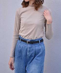 薄手素材なのでトップスとしてはもちろん、インナーとしても使いやすい万能アイテムです。