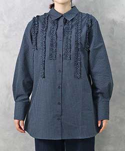 秋冬らしいチェック柄にフリルが施されたブラウス。