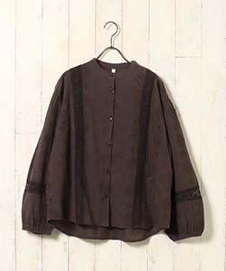 ブラウス全体に施されたシフリー刺繍とレースの組み合わせが大人っぽいデザイン。