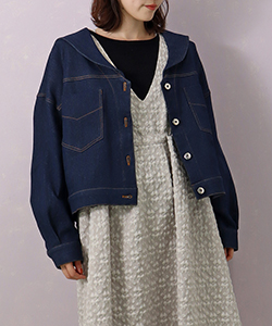 小さめなセーラーカラーが愛らしいセーラージャケット。