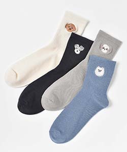 足もとにちょこんと覗くワンちゃんの刺繍が可愛い、ブルーブルーエオリジナルソックス。