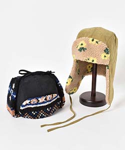 耳当て部分にボア素材を使用、風の強い日や寒い日に耳当てをおろせば防寒対策もバッチリ。