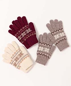 冬らしい雪柄のニットグローブ。