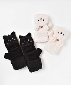 スマホの操作やちょっとした作業の際にとても便利な指なしタイプ、寒い時はアニマルフェイスのカバーでしっかり覆えばあたたかく過ごせます◎