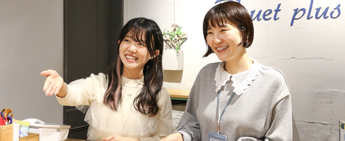 ブルーブルーエでは、自分の個性を活かせる部署があり、たくさんのチャンスに溢れています。