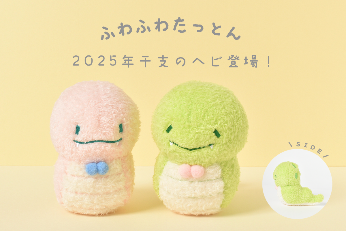 ふわふわで優しい色合いのへびのぬいぐるみが登場♪
