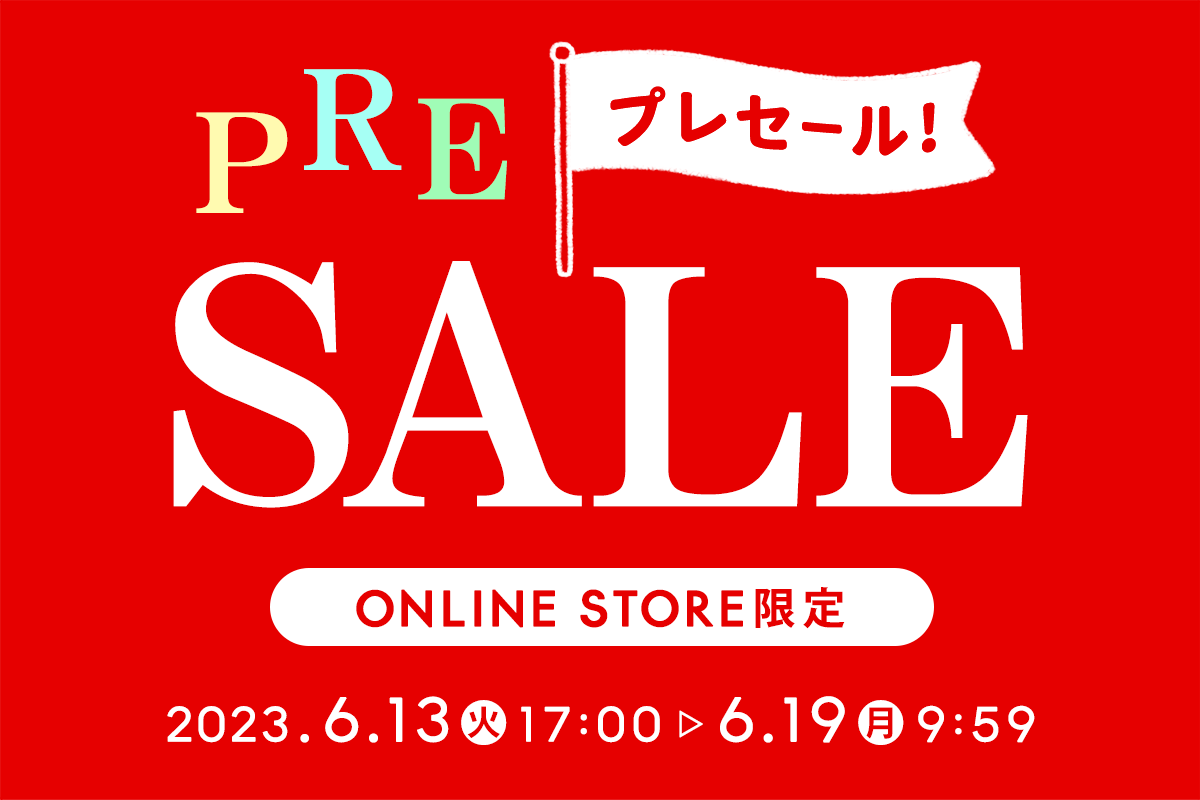 夏のセールに先駆け、オンラインストア限定の プレセールを開催します👏 ★★プレセールは全品20%OFF★★ ページの表記価格からさらに20%OFFでご購入いただけます♪ 19日(月)までの期間限定で在庫限りです! チェックはお早めに 対象商品はこのアイコンが目印! オフ価格はカート画面で自動で適応されます