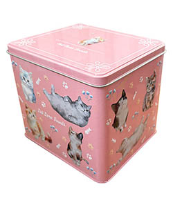 エンボス加工を施した、とってもキュートなネコのスクエア缶。