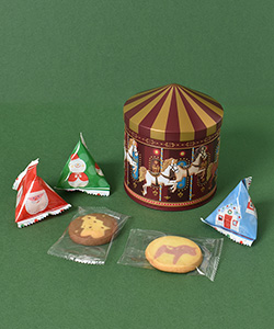 まるで本物のメリーゴーランドのような、夢あふれるデザインのお菓子缶。