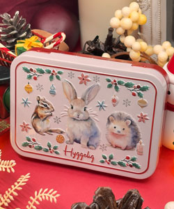 うさぎやリス、ハリネズミなど森の仲間たちが描かれた、あたたかみのあるデザインのミニ缶。