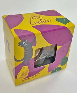 ネコのイラストパッケージが可愛いマーガリン不使用の、秋の味わい広がるクッキーです。