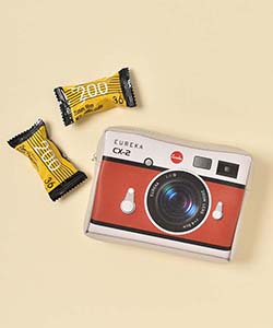 カメラのプリントが施されたカメラ好きな方にはたまらないデザイン。
