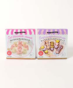 ・ねこちゃんクランチ:ホワイトチョコレート80g、チョコレートペン12g×各1本(チョコ・ストロベリー)、モルトパフ8g、モールド(チョコレート流し型)1枚