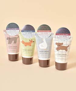 動物たちのゆるーいデザインが目を引くハンドクリーム。