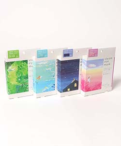 アイマスクは穴が開いていないタイプ、香りと想像力で静かに心をゆるめられます。