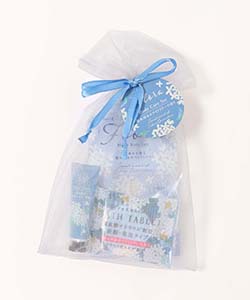 入浴剤とハンドクリームが入った素敵なオーガンジーセット。