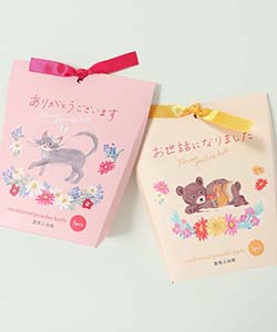 「ありがとうございます」や「お世話になりました」のメッセージ付き入浴剤セット。