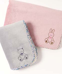 ウサギとネコのアップリケがとってもキュートなブランケット。