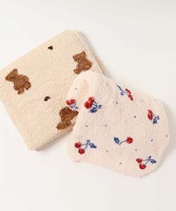 くまとチェリーの総柄デザインが可愛らしく、ソファやベッドに置くだけでお部屋があたたかい雰囲気に。