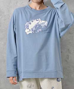 ネコのくつろぐ姿が描かれたブルーブルーエオリジナルのルームウェア。