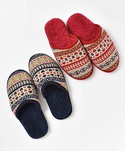 あたたかみのあるフェアアイル柄のニットルームシューズ。