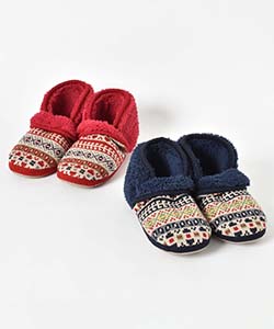 あたたかみのあるフェアアイル柄のニットルームシューズ。
