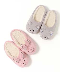 ウサギとネコの顔が付いたとってもキュートなルームシューズ。