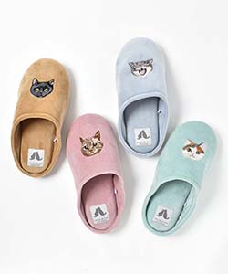 ブルーブルーエオリジナルのネコ刺繍ルームシューズ。