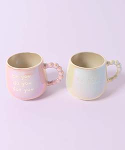 パールネックレスをイメージしたハンドルがポイントのマグカップ。