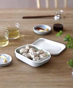 お手入れしやすいシンプルなデザイン、フタのくぼみにフィットして重ねられるので冷凍庫にすっきり入れられます。