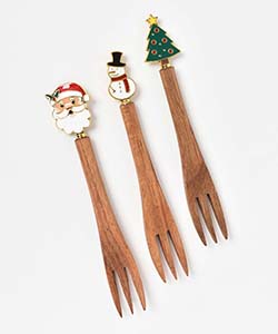 クリスマス気分を盛り上げてくれるかわいいモチーフの木製フォーク。