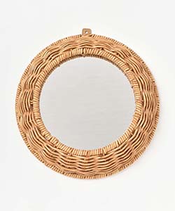 天然素材で編まれたような温かみのあるラウンド型ミラー。