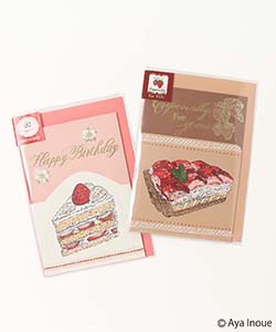 三つ折りになったカードをめくるとショートケーキやタルトが食べられているなど、ストーリーを感じさせる仕掛けが魅力的なカードです。