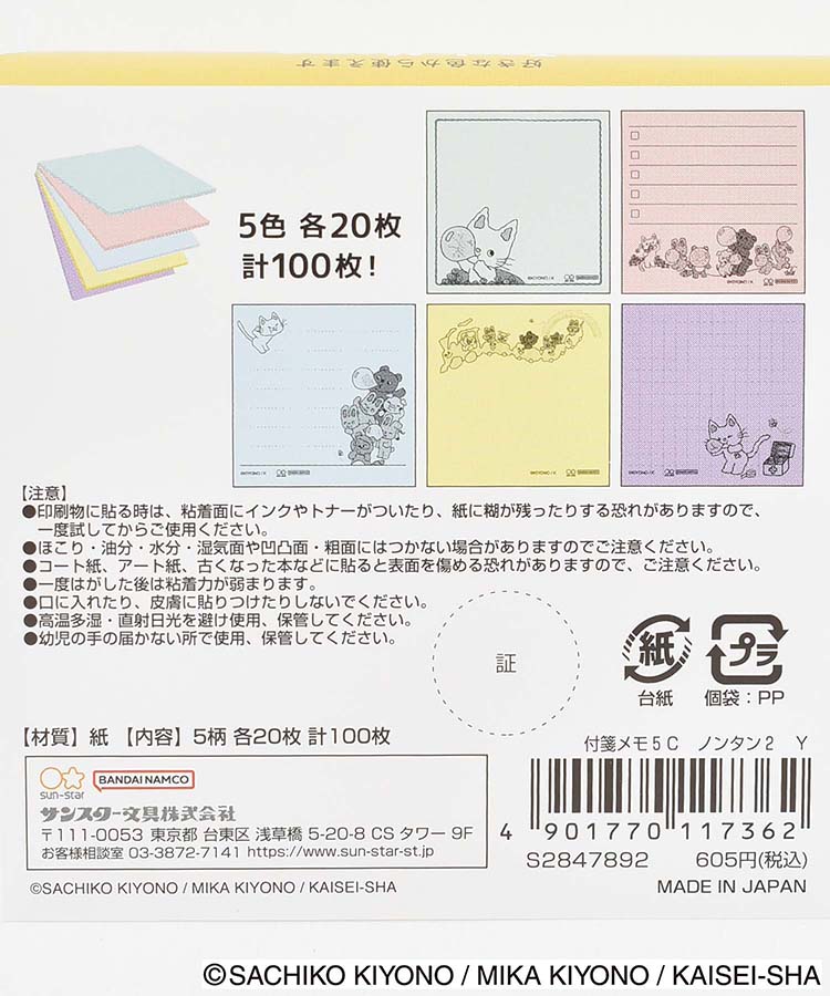 ノンタンとなかまたちの様々な表情が楽しめるデザインの付箋メモ。
