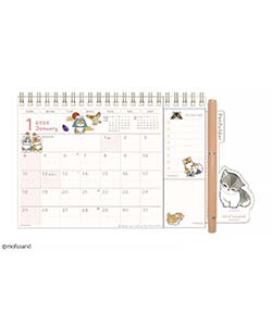 カレンダーの端には絵柄がひょっこりかわいいペンホルダー、メモ書きに便利な付箋やTo Doリストが各30枚ずつ付いているのもポイントです。