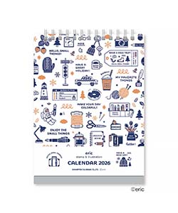消しゴムはんこ作家、イラストレーターのeric(エリック)さんの2026年卓上カレンダー。