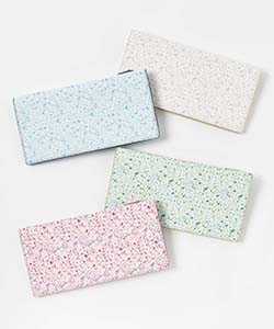 独特な模様が目を引くテラゾー柄の長財布。
