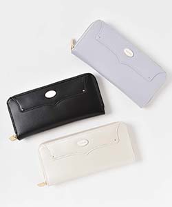 丸プレートが付いた女性らしい優しい雰囲気の長財布。
