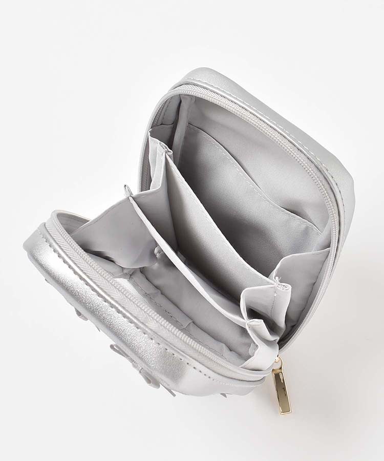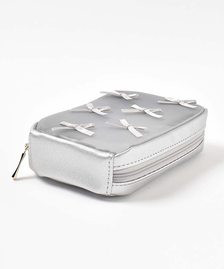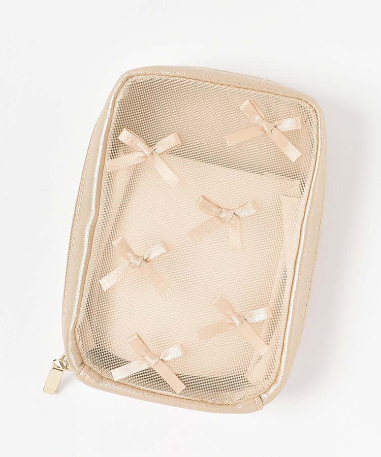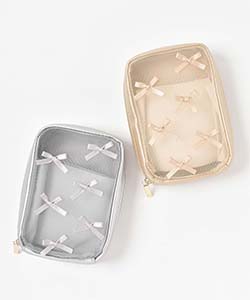 ミニリボンが付いた上品な可愛さのマルチポーチ。