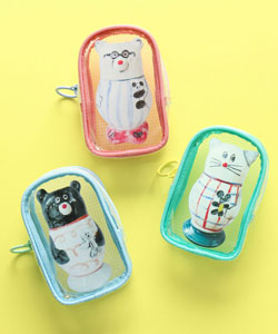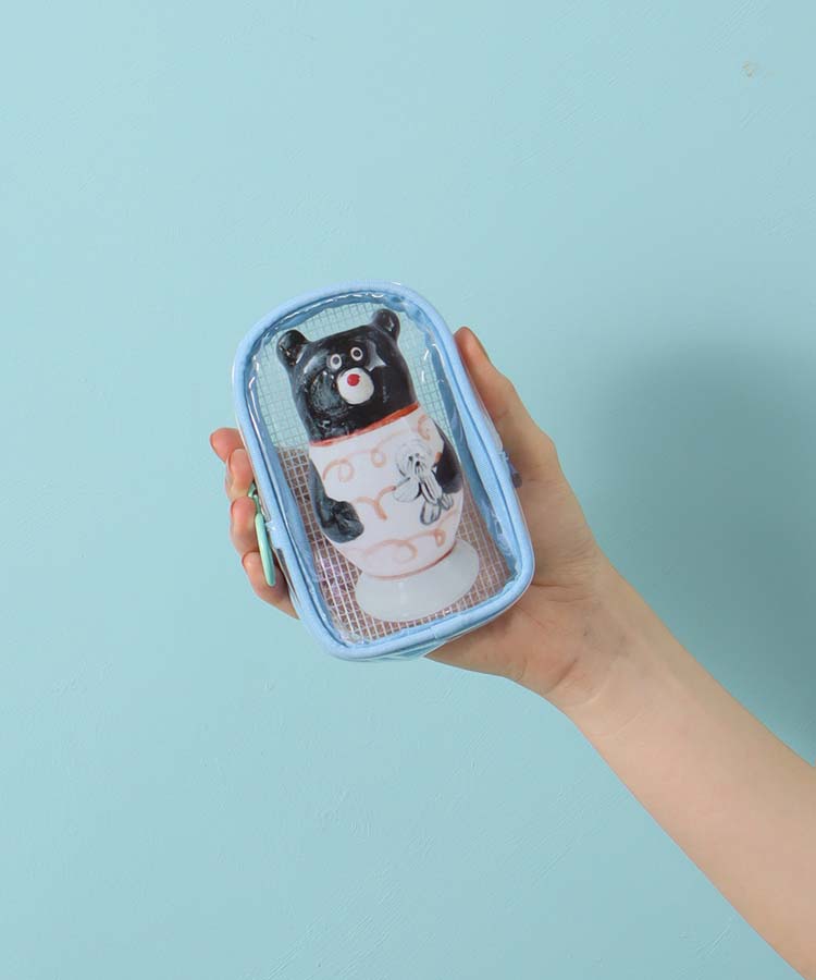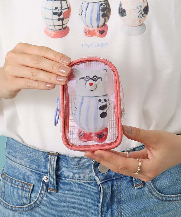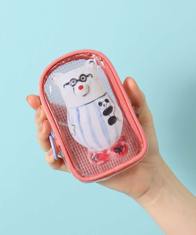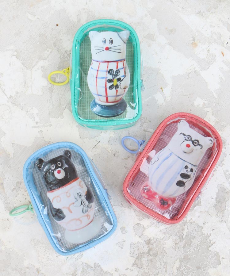 CYILABOさんが制作した動物の一輪挿しモチーフが、フロント部分に大きくデザインされているダイカットポーチ。