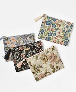 鮮やかな4種類のフラワーデザイン、同シリーズの小物と揃えて使うのもおすすめ。