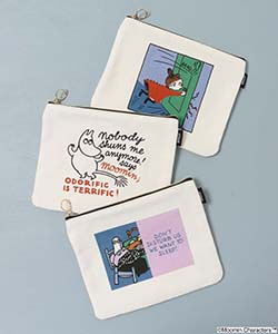 ムーミンのコミックシーンをカラフルにデザインした、遊び心あふれるフラットポーチ。