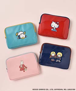 ブルーブルーエオリジナルのサンリオキャラクターズエナメル風ポーチ。