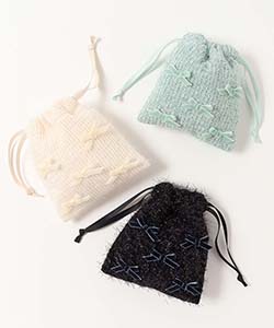プチリンドラメニットリボンミニ巾着