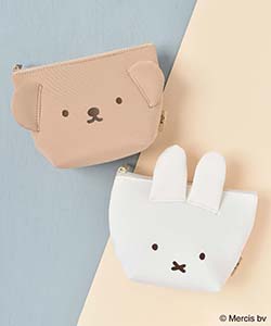 ミッフィーとボリスの耳が付いた可愛らしいデザインの台形ポーチ。