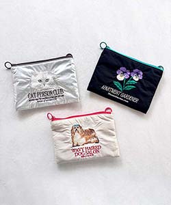 海外のローカルエリアをテーマにしたフラットポーチ。