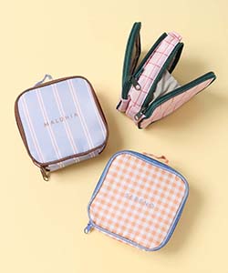 チェックやストライプのカラフルなデザインのスクエアポーチ。