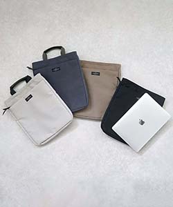 遮熱効果や撥水加工、クッション性のある素材を採用したPCの持ち歩きにぴったりなアテム。